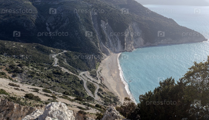 Знаменитый пляж Миртос на острове Кефалония (Греция) с высоты