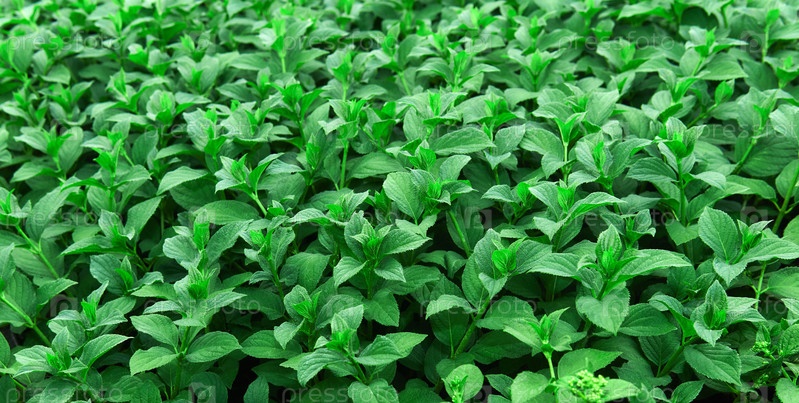 Молодые саженцы мяты, зеленый естественный фон