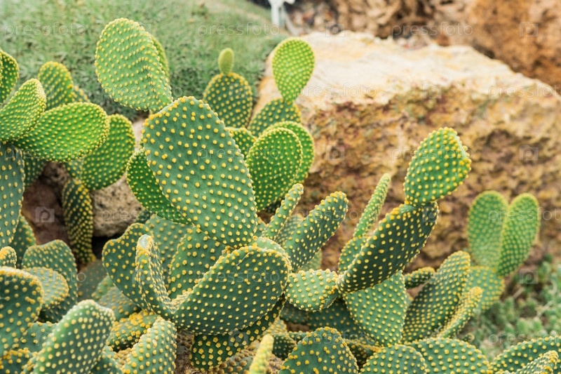 Естественный фон - заросли кактуса опунции с желтыми шипами