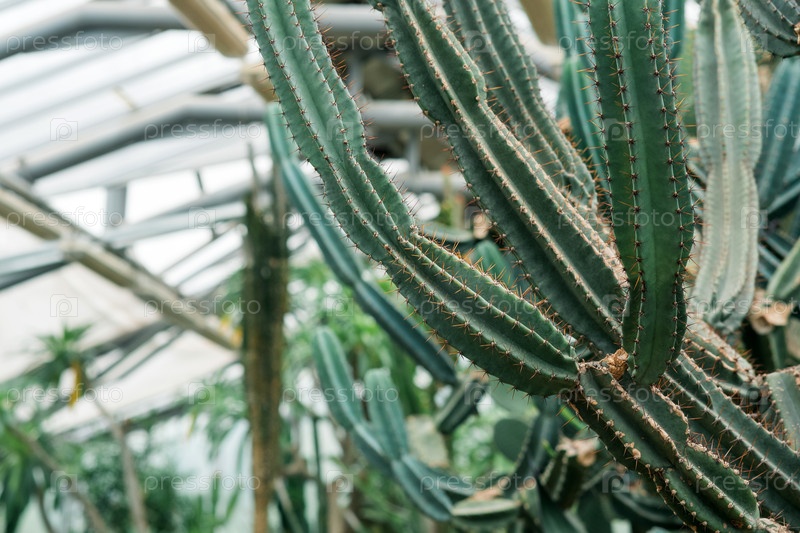 Древовидные кактусы и другие суккуленты в интерьере теплицы