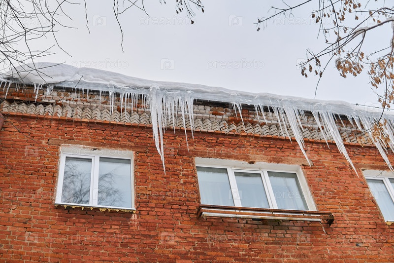 Сосульки на крыше кирпичного дома