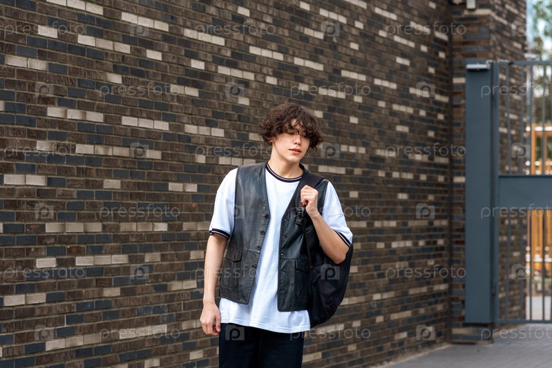 Молодой человек на улице на фоне городских зданий