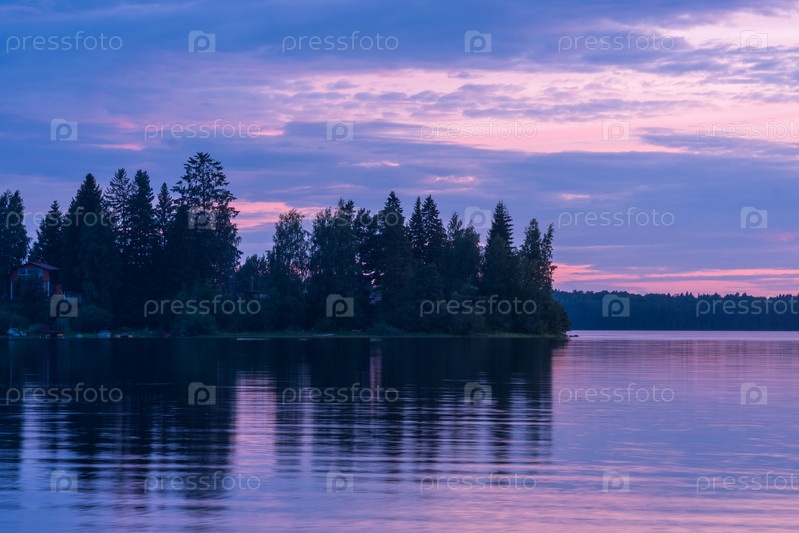 Природный ландшафт, белая ночь над широким северным озером