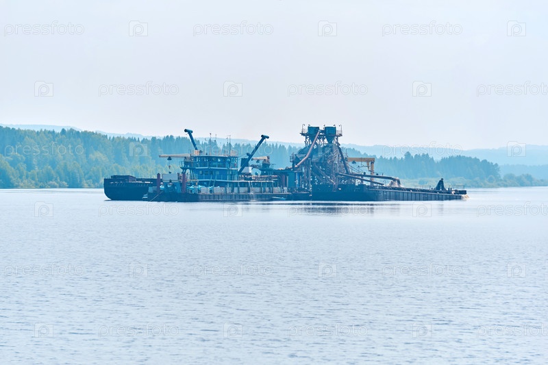 Плавучий завод по добыче песка - земснаряд и сепаратор - на реке