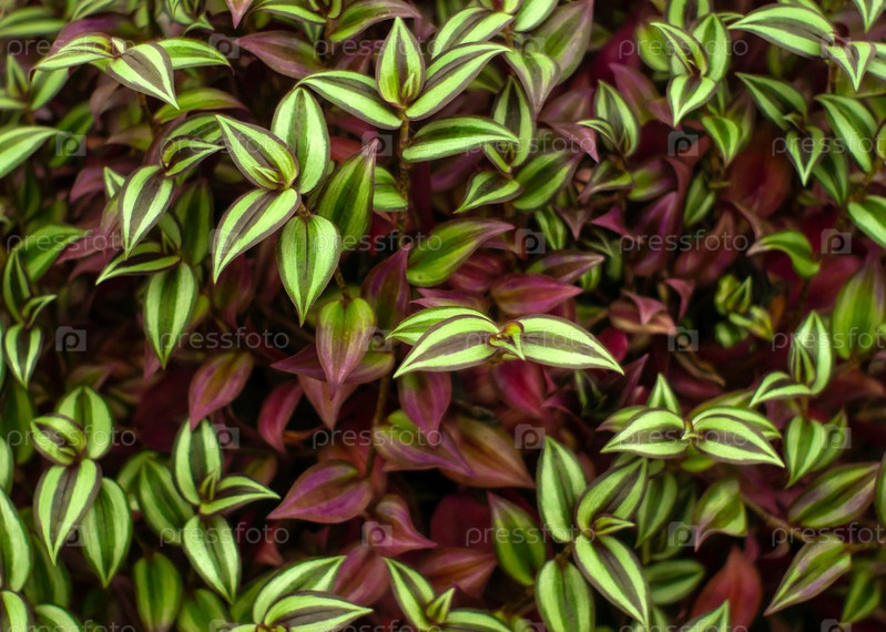 Естественный цветочный фон из разноцветных листьев традесканции зебрины