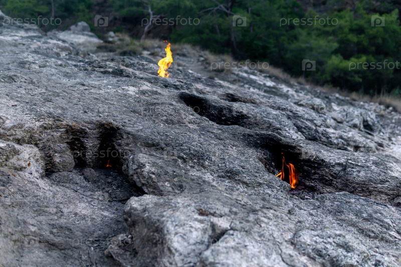 Постоянно горящий огонь на месте выброса природного газа на горе Химера (Янарташ), Турция