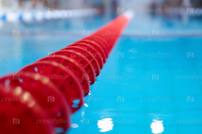 Фрагмент соревновательного бассейна с голубой водой и размеченными дорожками для плавания