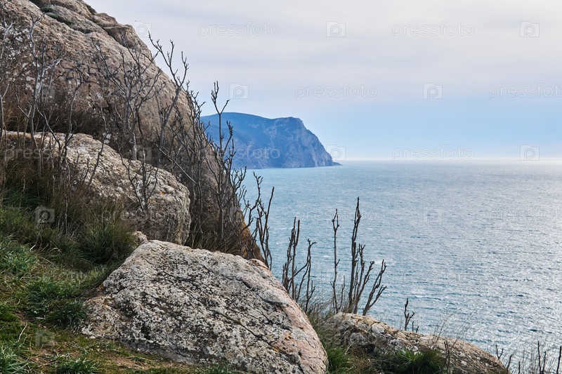 Вид на зимнее море с высокой скалы