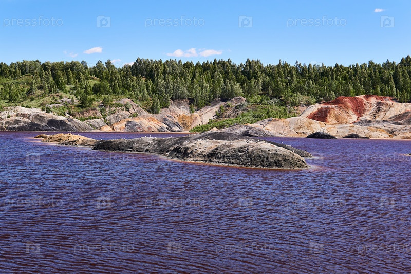 Остров, где чайки гнездятся посреди озера в старом каолиновом карьере