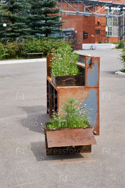 Благоустройство в ржавых железных конструкциях на территории завода, превращенной в общественное пространство