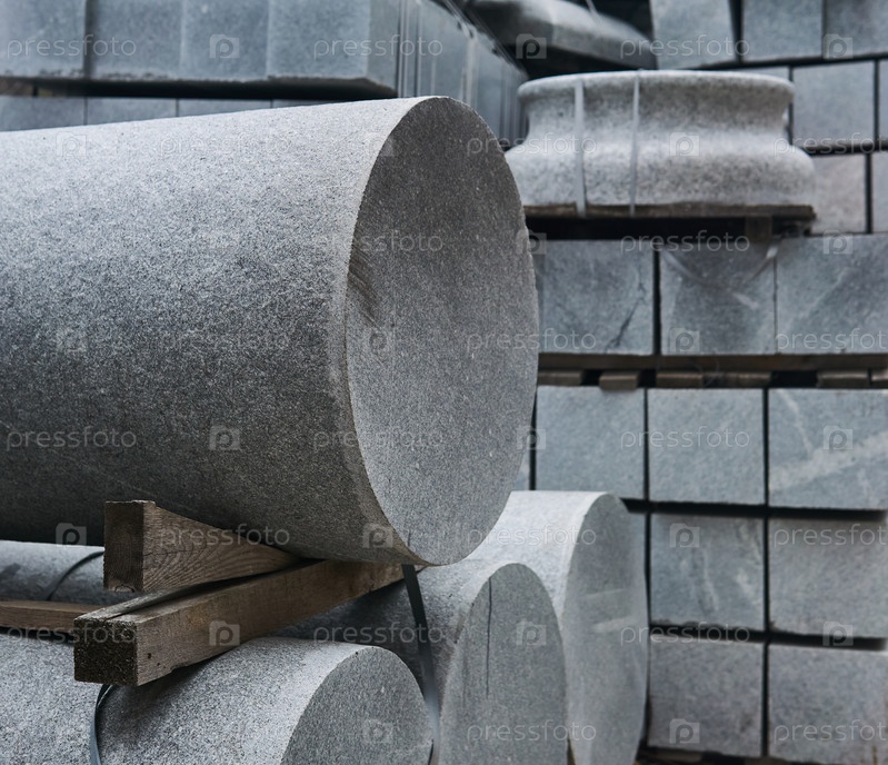 Гранитные блоки и детали колонн, подготовленные к строительству