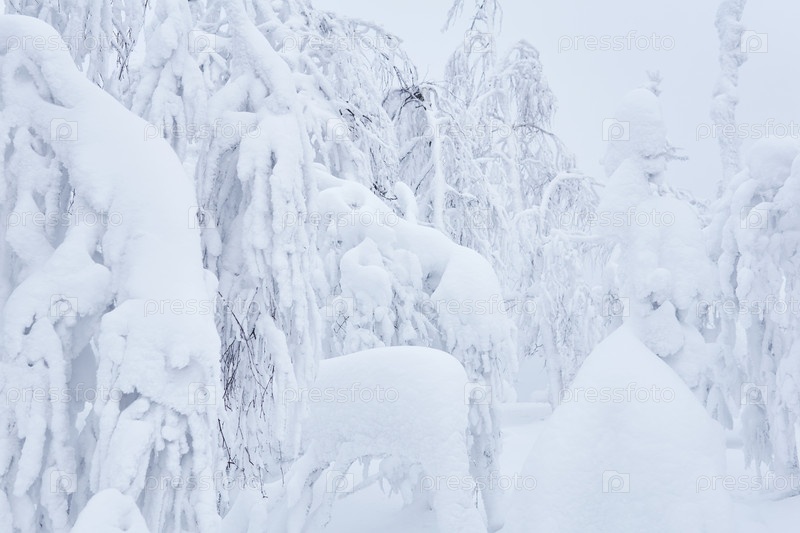 Естественный фон - горный лес после сильного снегопада