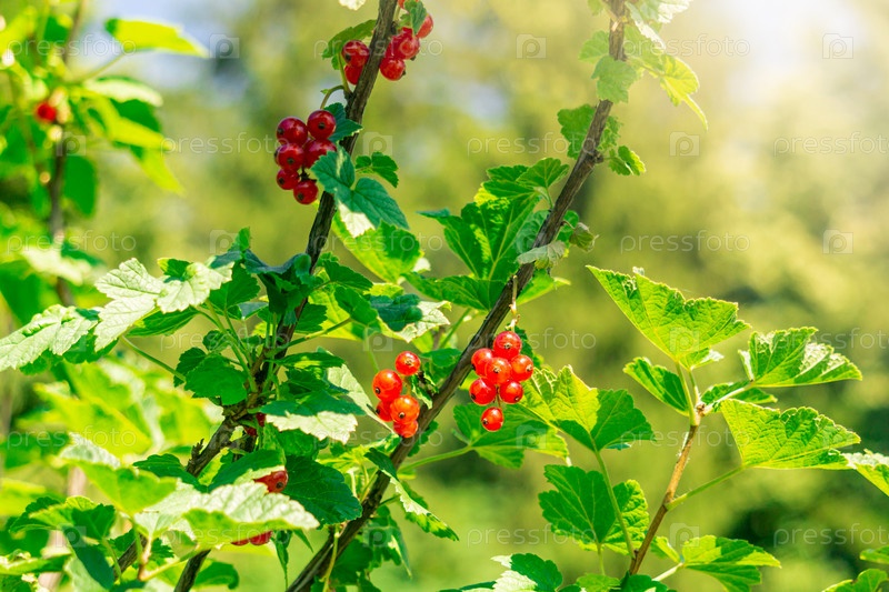Ягоды красной смородины на ветке в солнечный день