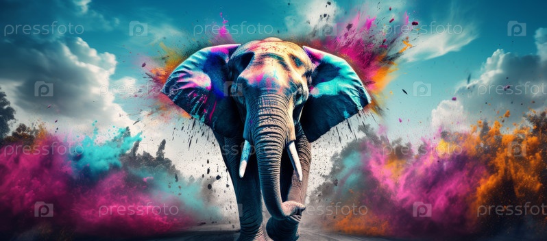 Нарисованные слоны позируют на фестивале слонов в Джайпуре, Индия