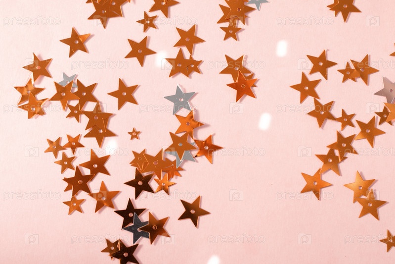 Золотое конфетти на розовом фоне, шаблон поздравительной открытки