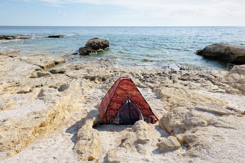 Палатка на берегу Каспийского моря
