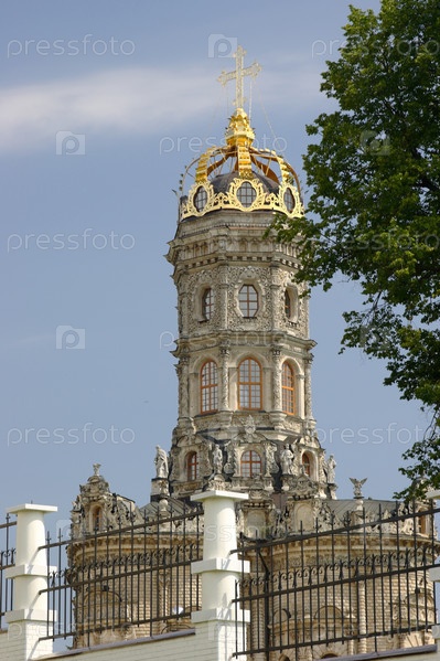 Купол и фасад фасада крупного плана. Церковь иконы Божией Матери Знамение. Дубровицы. 2005 год