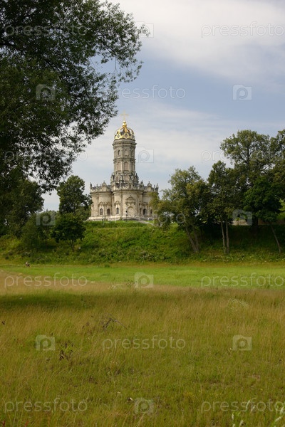Природный пейзаж с Церковью иконы Божьей Матери Знамение. Дубровицы. 2005 год