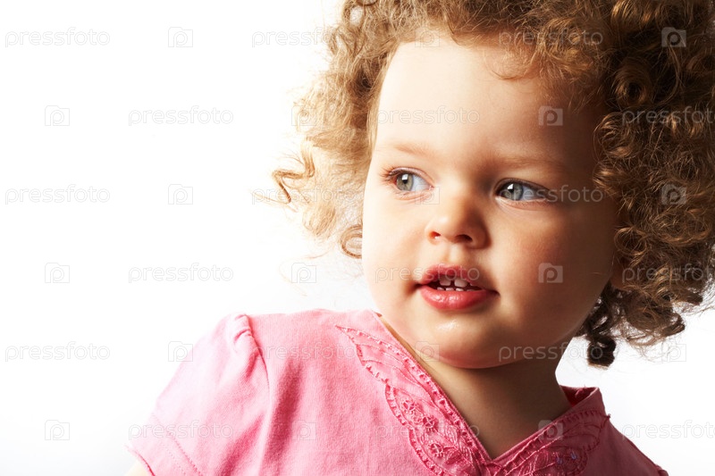 Портрет маленькой девочки, смотрящей в сторону на белом фоне