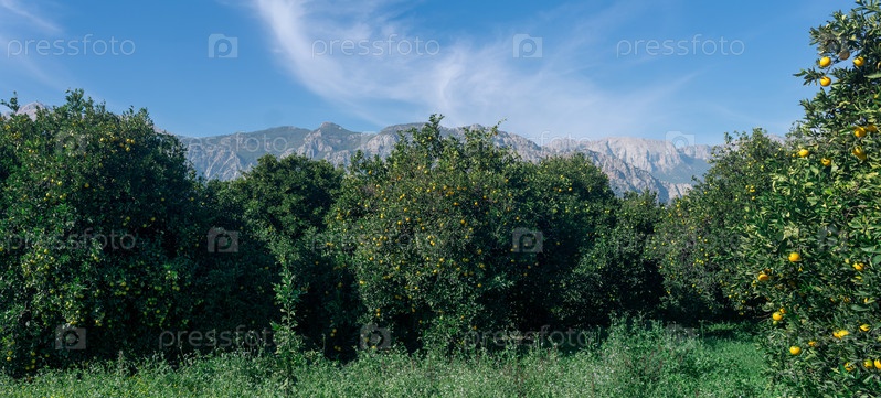 Апельсиновая плантация на фоне гор