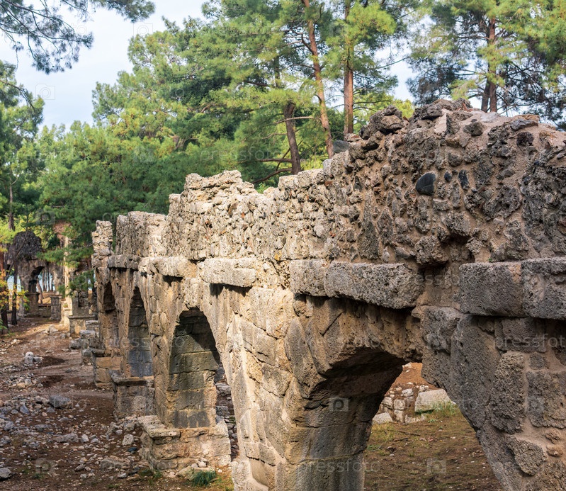 Руины римского акведука среди леса в древнем городе Фазелис