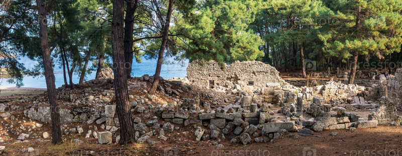 Вид на лесистые руины древнего города Фазелис