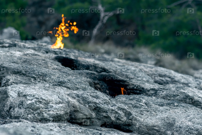 Постоянно горящие пожары на месте выброса природного газа на горе Химера (Янарташ), Турция