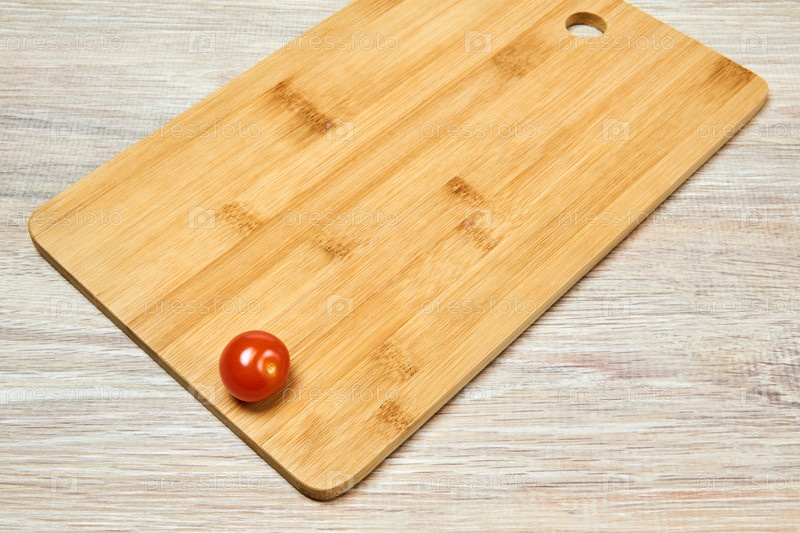 Одинокий помидор черри на разделочной доске на столе