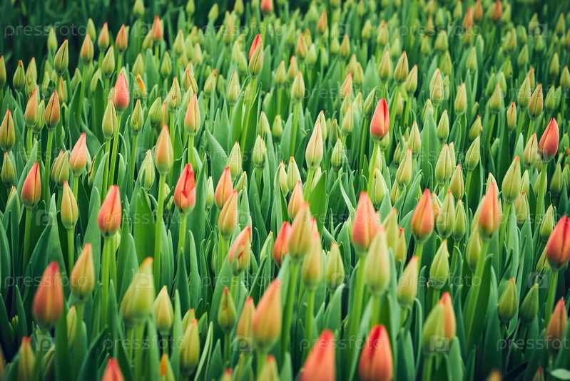 Цветочный фон - поле нераскрывшихся тюльпанов