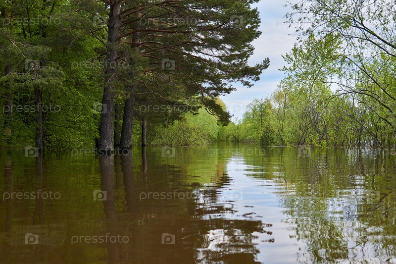 Лесная поляна затоплена во время наводнения