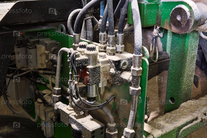 Машины и электрооборудование лесопильного завода, покрытые слоем опилок