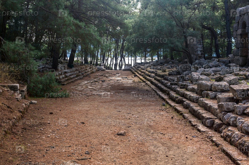 Бывшая главная улица в руинах древнего города Фаселис, Турция