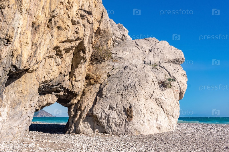 Естественная арка на берегу моря недалеко от древнего города Олимпос в Турции