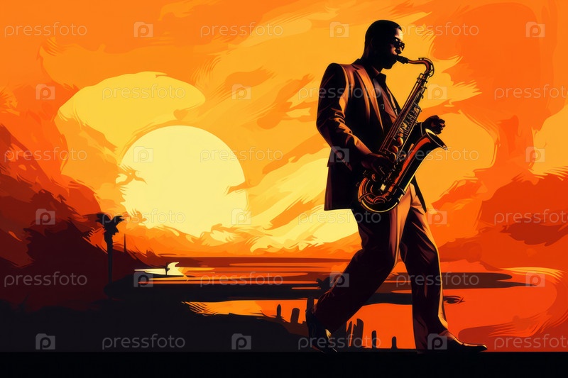 Концертный вид саксофониста с вокалистом и музыкальным джаз-бэндом на заднем плане