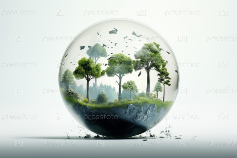 Хрустальный глобус, опирающийся на мох в лесу - концепция окружающей среды