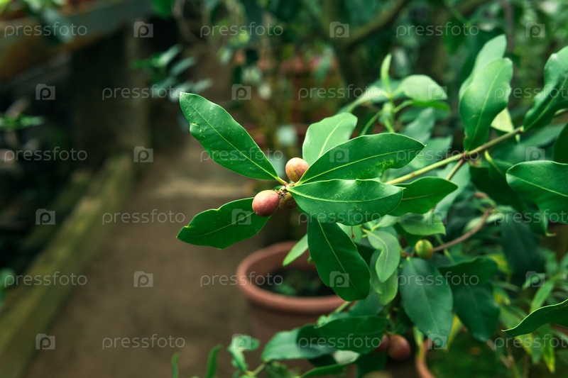 Ветка фикуса с плодами в интерьере теплицы