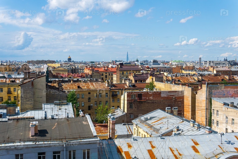 Панорамный вид на крыши города в историческом центре Санкт-Петербурга