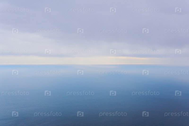 Туманное дождливое море до горизонта, вид с высоты птичьего полета