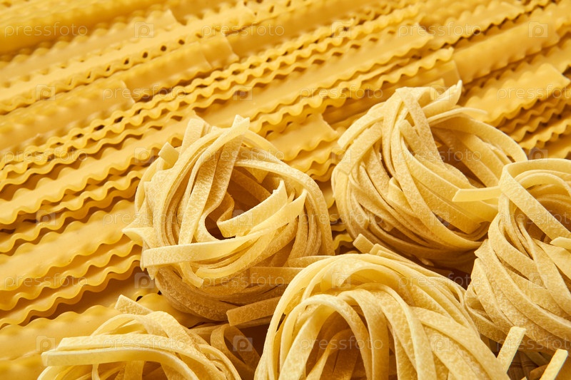 Фон из сушеных макарон, тальятелле и мафальдини