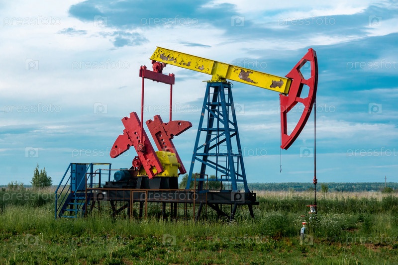 Насосная станция работает на нефтяной скважине в поле на открытом воздухе