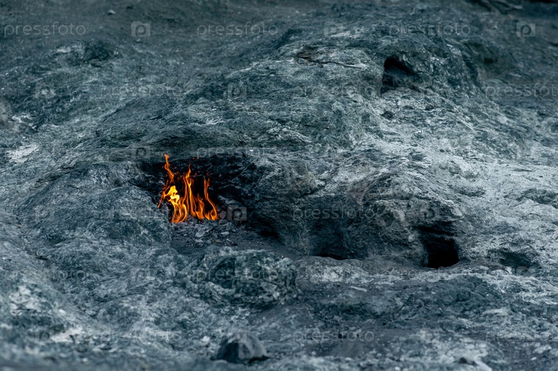Постоянно горящий огонь на месте выброса природного газа на горе Химера (Янарташ), Турция