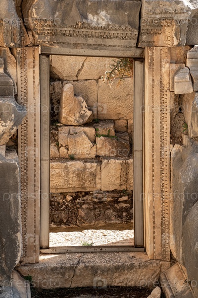 Резная дверь античного здания в руинах древнего города Мира, Турция