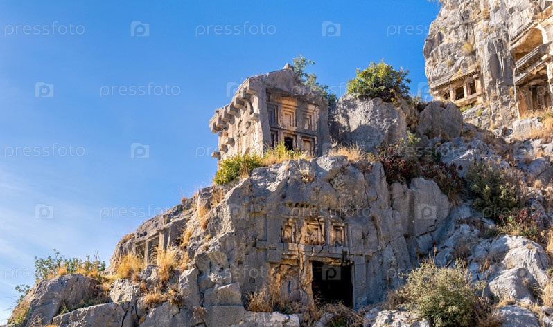 Древние гробницы и склепы, высеченные в скалах руин Миры