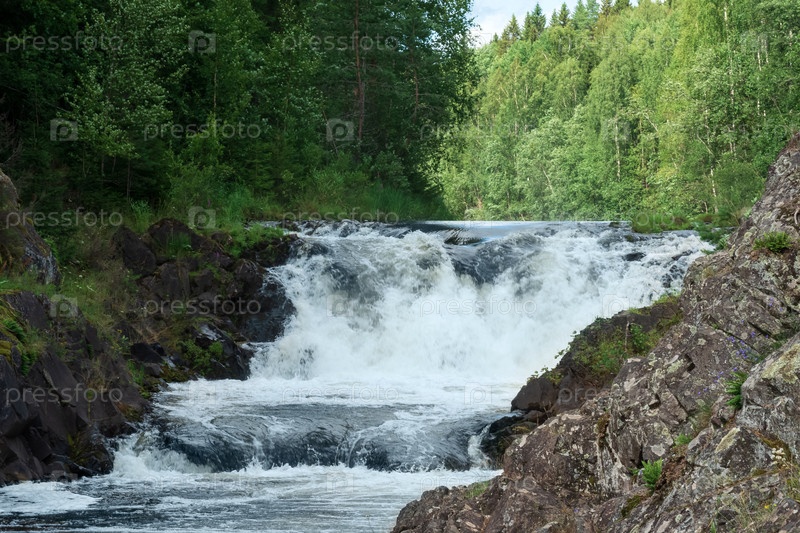 Природный ландшафт с прозрачным водопадом на лесной реке