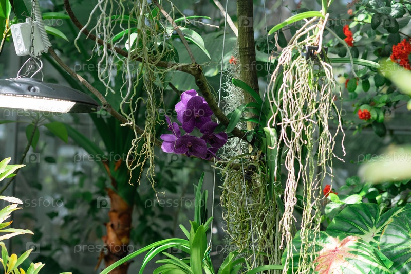 Орхидея фиолетового мотылька цветет в теплице