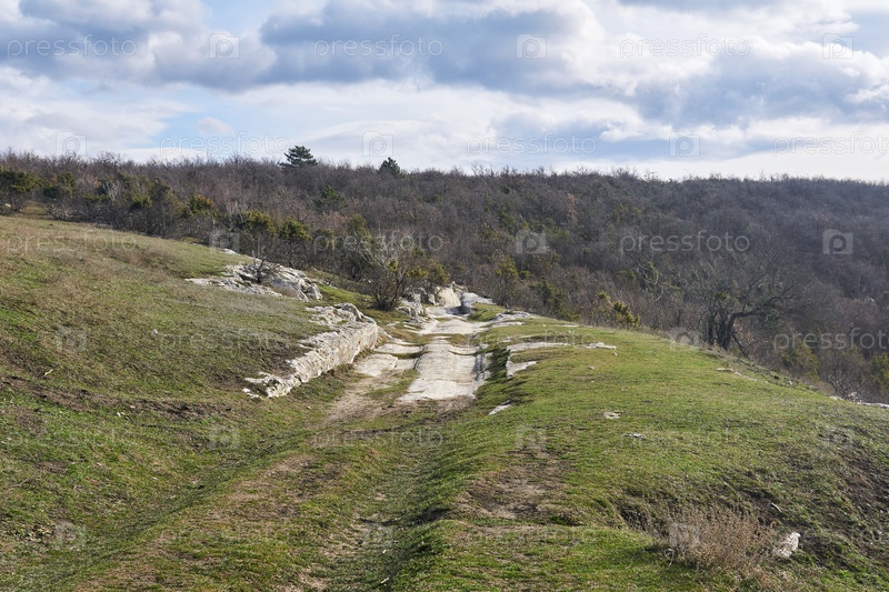 Древняя дорога с колеями для экипажей, давно высеченными в камне