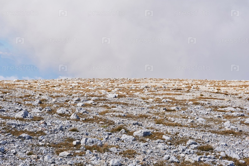 Пустынное альпийское плато, покрытое белыми камнями