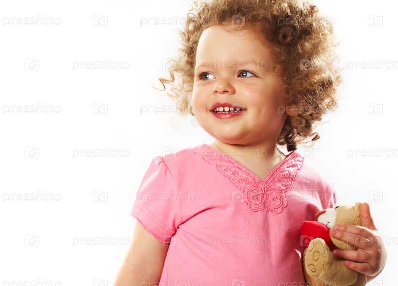 Портрет маленькой девочки, смотрящей в сторону на белом фоне