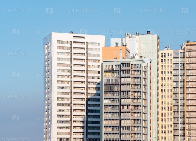 Городской пейзаж, группа высотных жилых домов на фоне неба