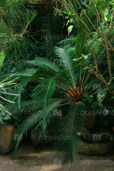 Разные тропические растения в старой теплице
